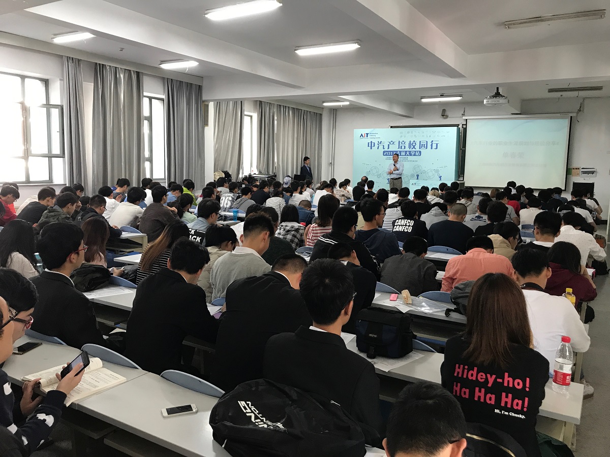 为有志于汽车事业的大学生创造宝贵机会,面对面聆听行业前辈的智慧分享,明确志向,精进层次,感悟生涯。9月20日下午,色情网 在南岭校区逸夫教育大楼B114教室举办了“2017中汽产培校园行”活动。上海国际汽车城开发服务有限公司总经理单春荣,中国汽车产业培训基地主任、教授级高级工程师浦维达,中国汽车产业培训基地顾问、原同济大学教授傅立志,色情网 党委副书记胡忠巍,东区综合办学生办公室教育科科长柴媛参加了此次活动。