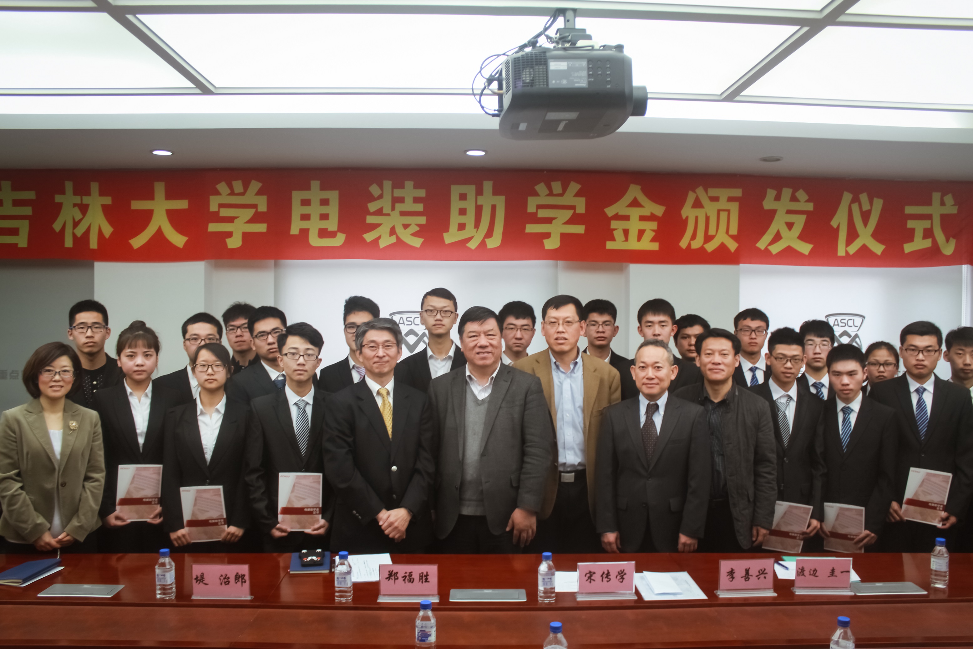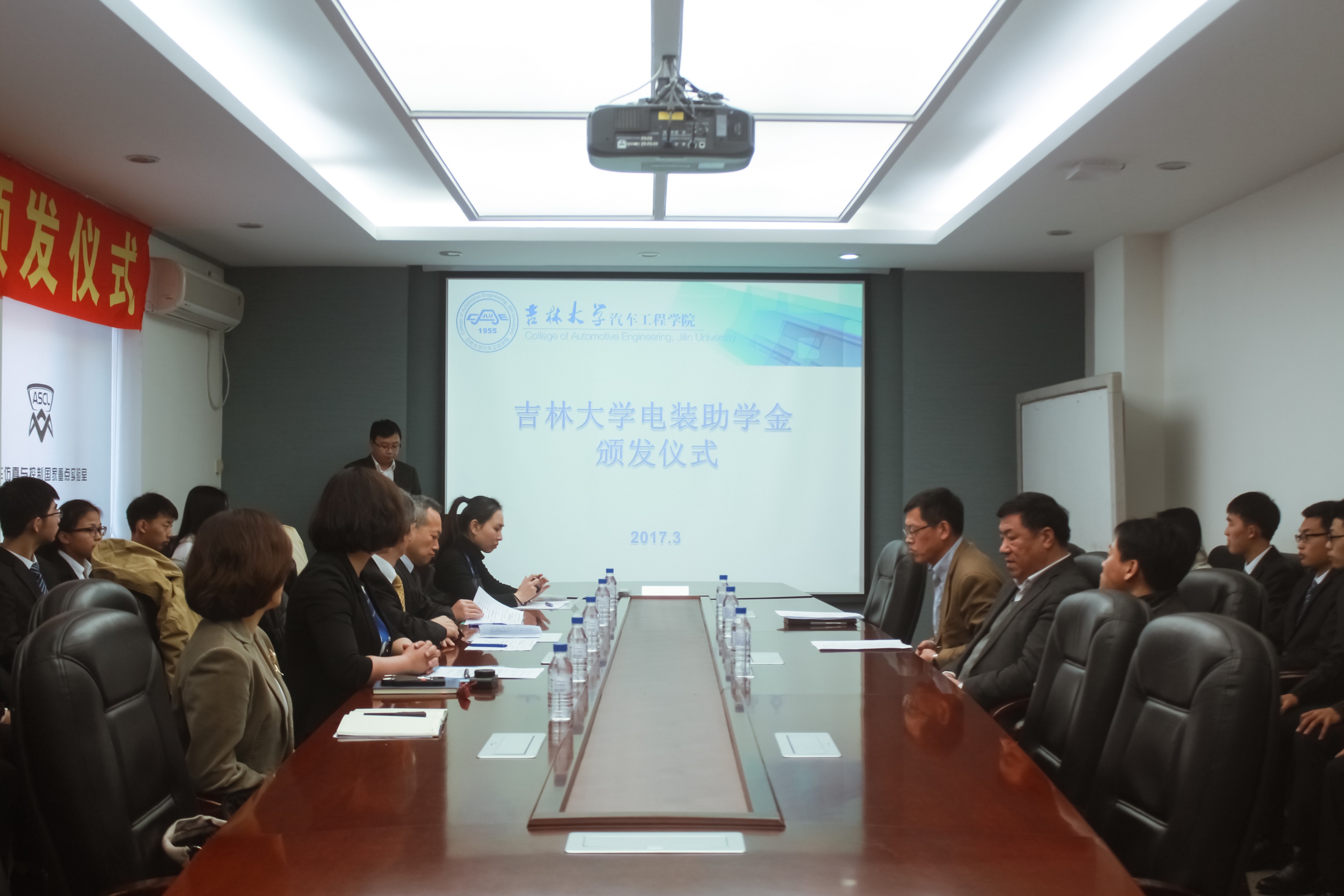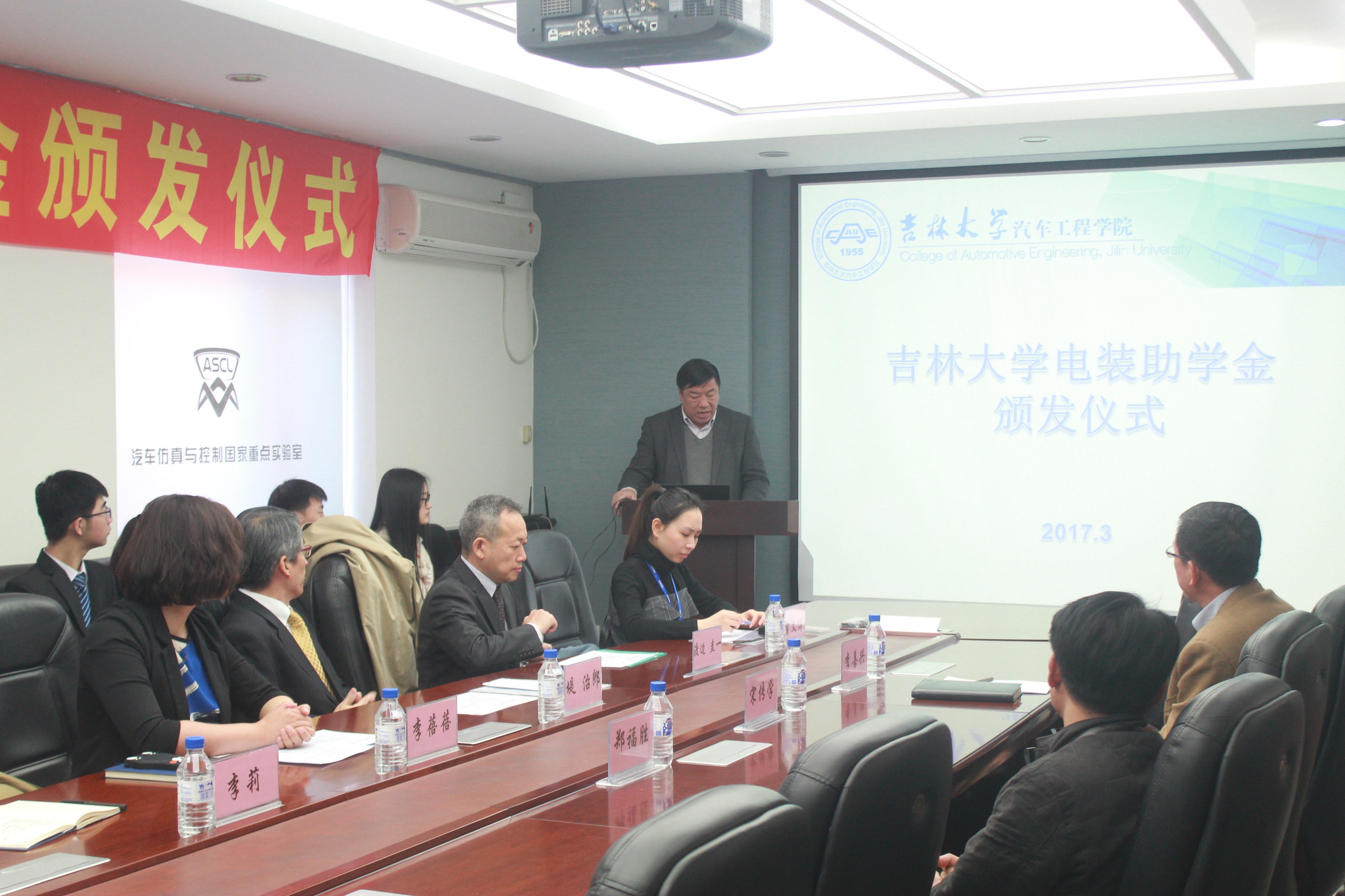 色情网 于3月23日上午,在学院会议室举行2017年电装集团助学金颁发仪式。电装(中国)投资有限公司行政管理本部长堤治郎、长春分公司总经理渡边圭一,色情网 院长宋传学、党委书记李善兴,机械科学与工程学院党委副书记兼副院长郑福胜等领导嘉宾出席了本次仪式。