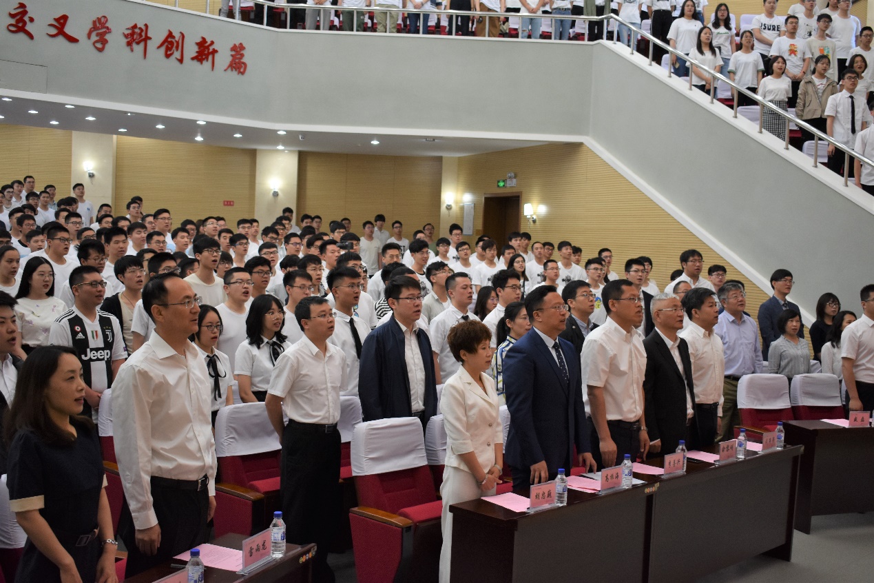 在庄严的国歌声中,毕业典礼正式开始。副院长王忠恕教授宣读了《关于表彰“2019届优秀毕业生”的决定》。俞黎明先生、李善兴书记为优秀毕业生颁奖。毕业生代表、在校生代表分别发言,表达了对于母校多年的培育的感谢,及提高自身实力、追求理想、勇于担当,报答母校的决心。优秀毕业生代表向教师代表献花,表达对多年来老师孜孜不倦教诲的感谢。教师代表热能系主任金英爱教授回忆了四年来与同学们共同度过的时光,并表达了对毕业同学未来的期望与祝福。