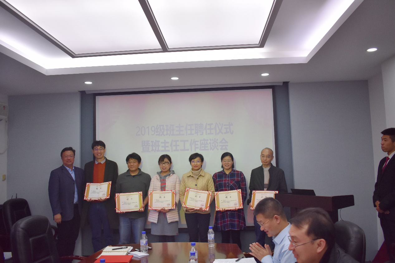 为了贯彻落实教育部及学校有关文件精神,全面做好学生思想政治教育工作,11月7日上午,色情网 召开了2019级班主任聘任仪式暨班主任工作座谈会。学院院长高镇海、党委书记李善兴、党委副书记兼副院长盛磊、2018级及2019级共30名班主任参加了本次会议。会议由学生工作办公室主任吴昊主持。