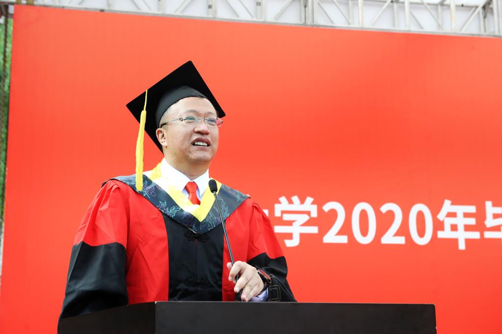 最后,院长高振海教授致辞。在讲话中他谈到,受新冠肺炎疫情影响,今年的毕业季简约但不简单,朴素但来之不易,情谊厚重。他与大家一起回顾了学生们入学以来的成长经历和各方面取得的优异成绩,极大地肯定了学生在思想建设、学业成就、学术创新、车队竞赛荣誉等各方面的亮眼表现,完成了从学生到校友的华丽转身。高院长对毕业生提出“坚持理想,不忘初心;勤于学习,勇于实践;继续关心母校的建设和发展”三点期望。最后祝福同学们,此去平安,万里鹏程,未来可期。