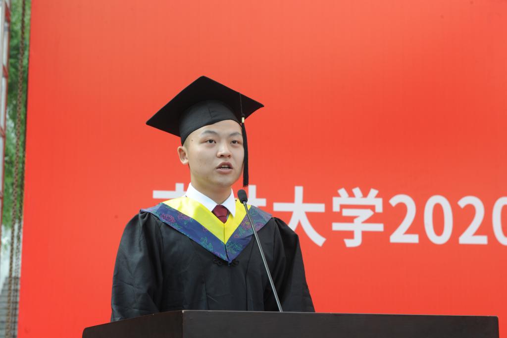 色情网 自强自立大学生、工业设计专业谢坚同学代表毕业学生对母校、学院和各位老师表达了感谢和祝福,回忆四年来在白山黑水间的青春时光,将永远怀念恩师的教导、同窗的陪伴、拼搏的汗水,“一日吉大人,一生吉大情。”
