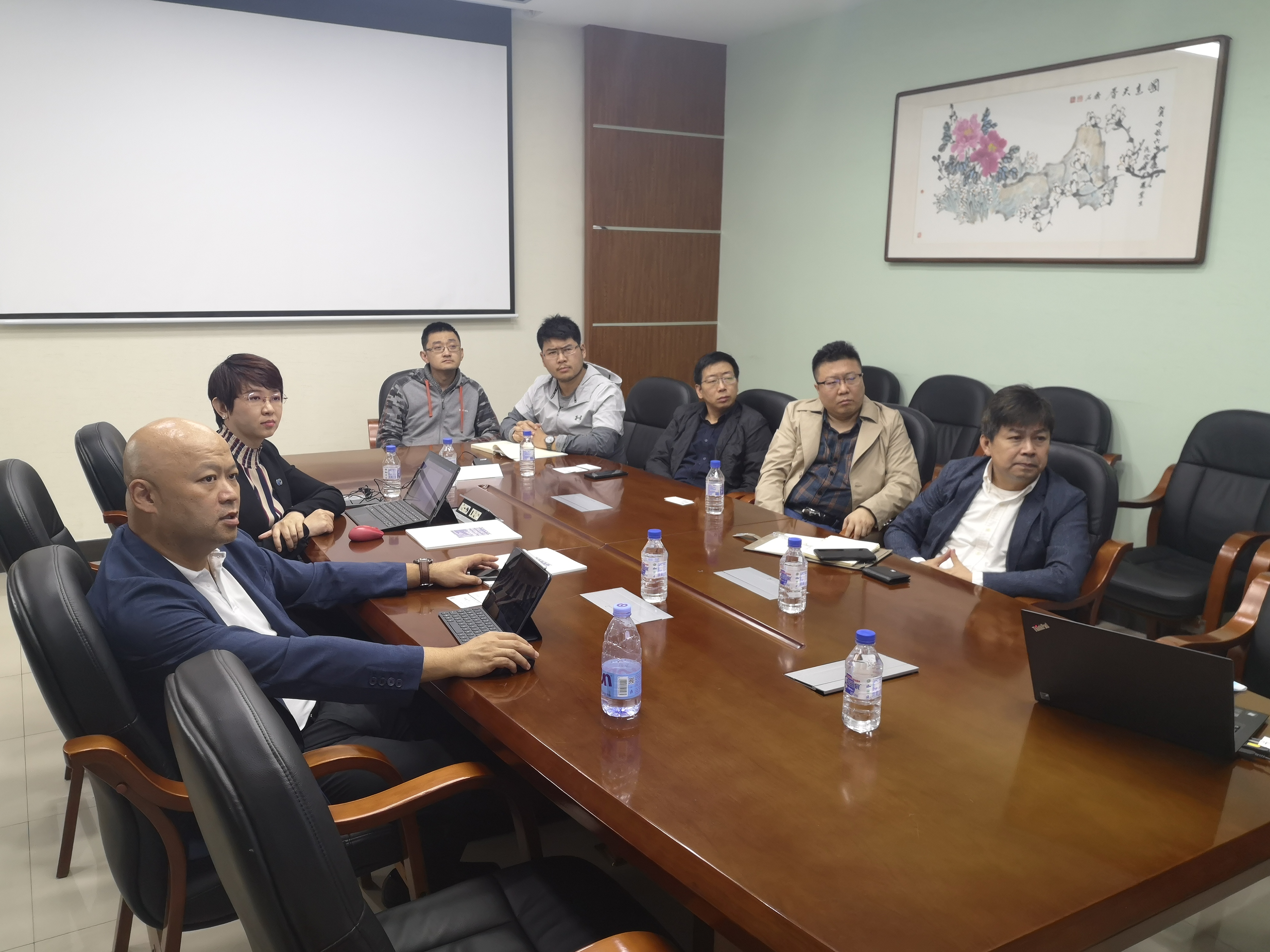 学术报告会之后,学院邀请国创中心的团队人员进行了座谈交流。会议由闵海涛副院长主持,重点实验室副主任胡兴军及部分教师代表参加会议。闵院长对原经理一行的到访表示欢迎并介绍了学院的基本情况,原经理也介绍了国创中心公司目前发展情况及此行目的。会上,学院教师代表与国创中心的团队人员进行了积极的交流,双方表达了日后合作的美好愿景。