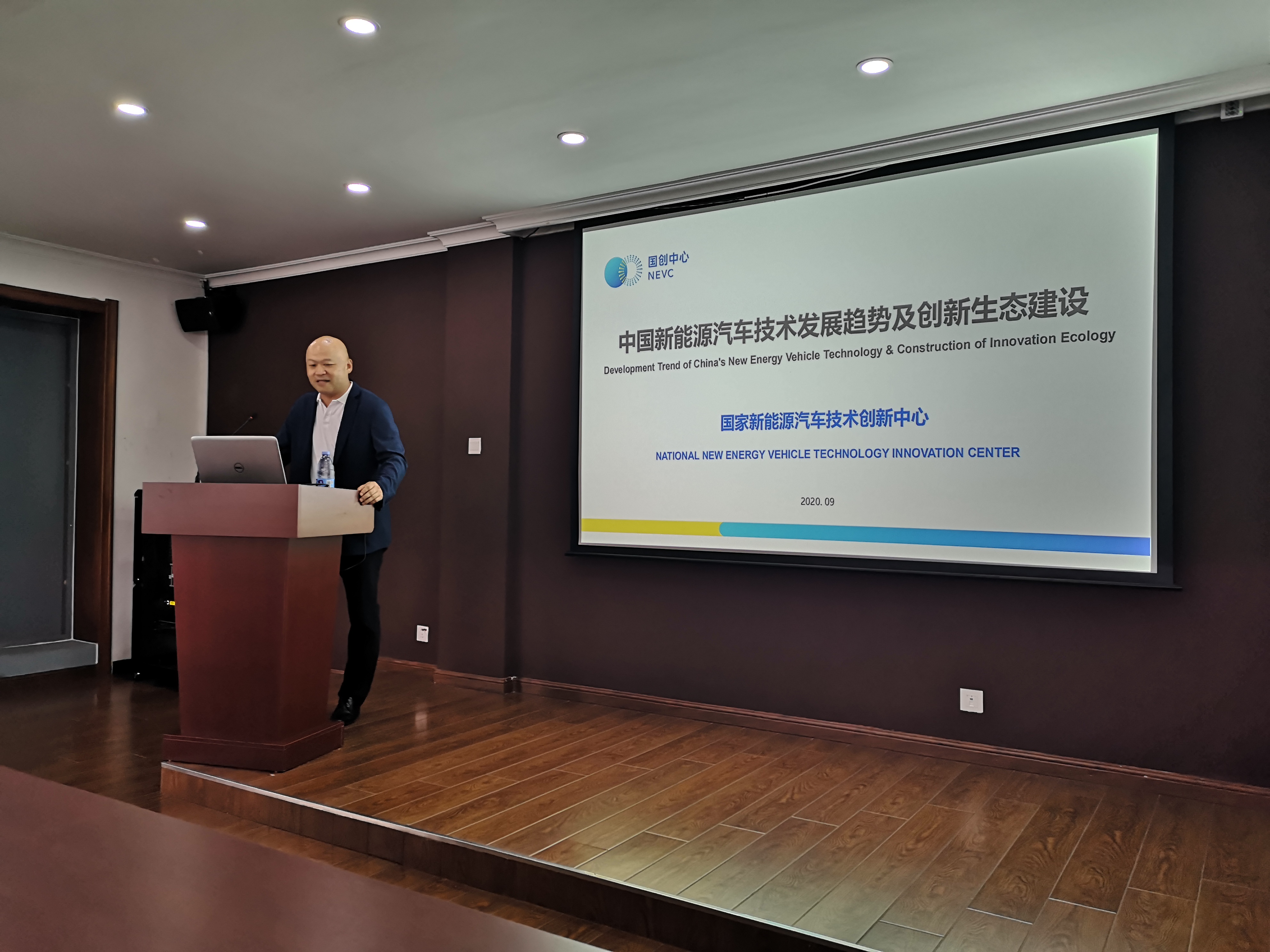 参观后,原诚寅总经理作为主讲人在先进控制基地报告厅为学生进行了学术报告。报告会上,原经理分享了自己在汽车行业中的工作经验,介绍了新能源汽车产业的变局与发展趋势、新能源汽车技术发展现状与趋势以及国创中心的新能源汽车创新生态建设。原经理表示国创中心愿意为同学们提供科研平台,鼓励同学们正视中国当代汽车工业遇到的困难和挑战,勇于创新,迎难而上,将困难化作机遇,为汽车工业的革新做出自己的贡献。原经理与同学们进行了交流讨论,解答了同学们提出的问题。