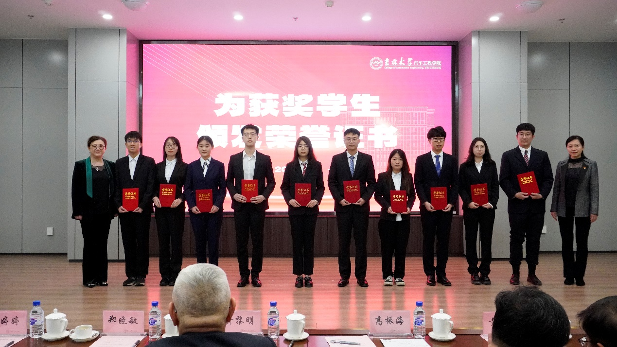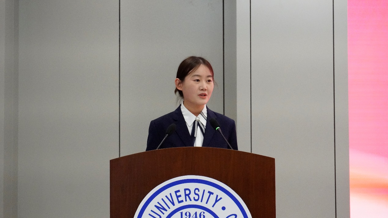 在校获奖学生代表2019级车辆工程专业张馨雨发言。她在发言中表达了对俞黎明先生无私帮助与支持的感谢,并表示未来将继续刻苦学习,努力提升个人能力,以实际行动回馈社会,不断为实现自己的“汽车梦”奋斗。
