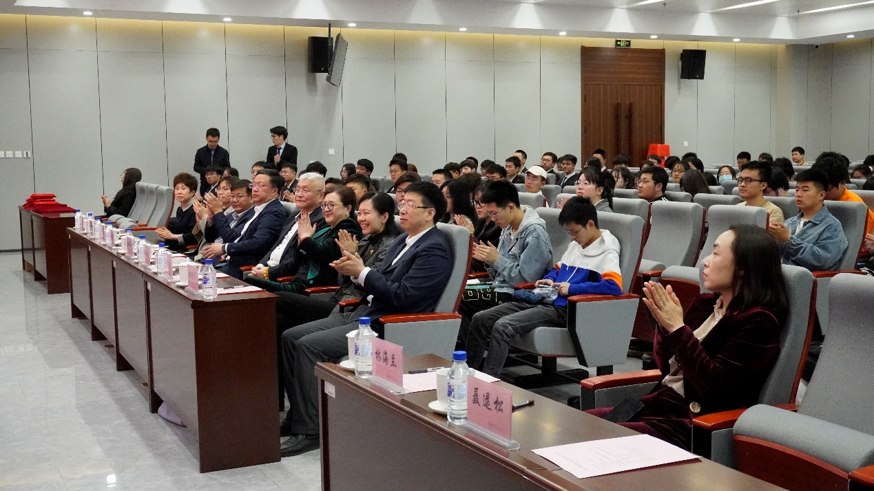 俞黎明先生致辞。俞黎明先生介绍了自己设立“黎明人才奖学金”的初衷——回馈社会,振兴民族汽车工业。他表示,希望所有获奖学生勤勉务实,认真钻研,为实现中国汽车工业强国而不懈奋斗!