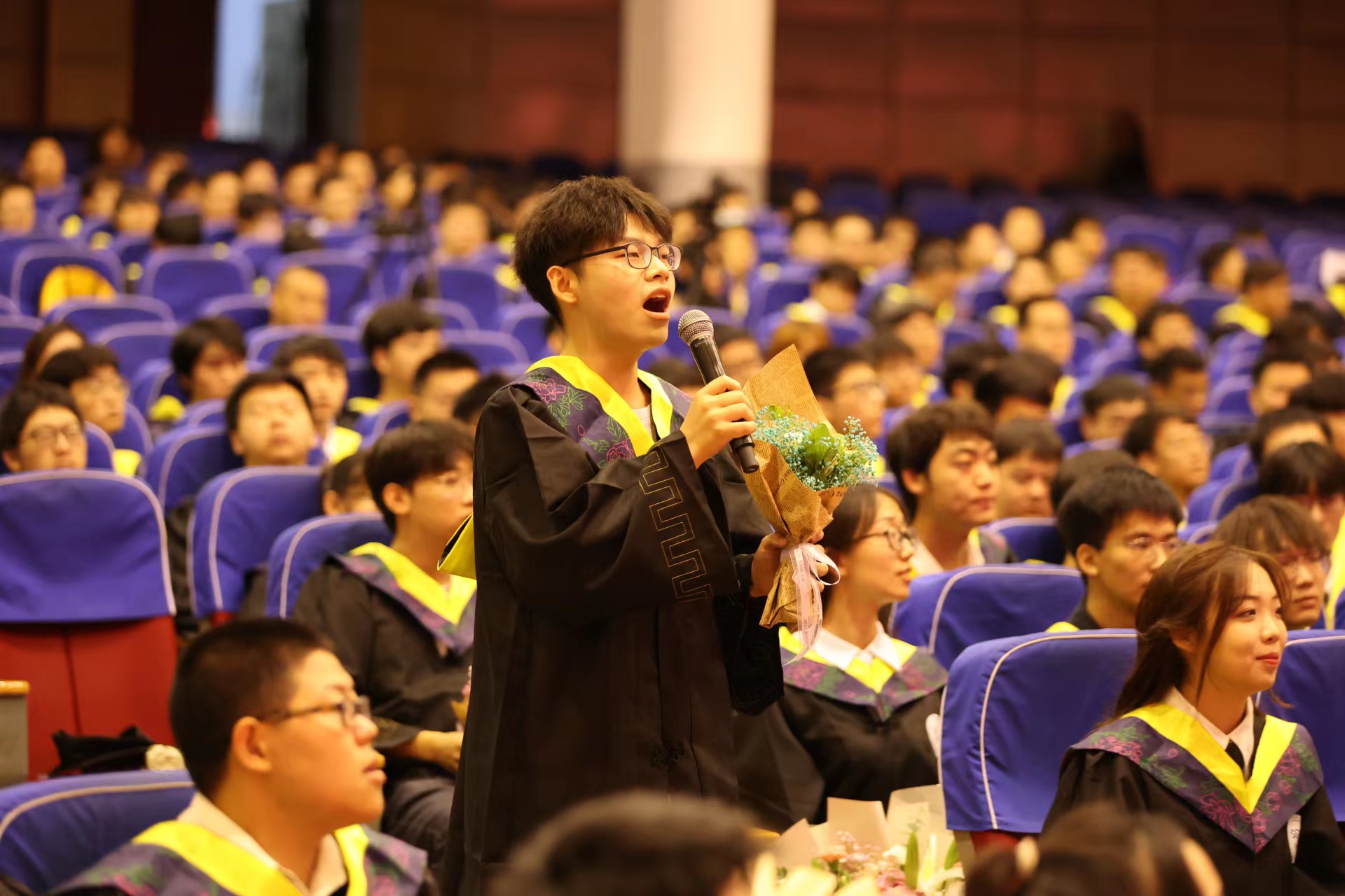 典礼在庄严的国歌声中拉开序幕。学院党委副书记胡忠巍老师宣读《关于表彰2023届优秀毕业生的决定》,党委书记黄忠华老师为8名优秀毕业生代表同学颁奖。