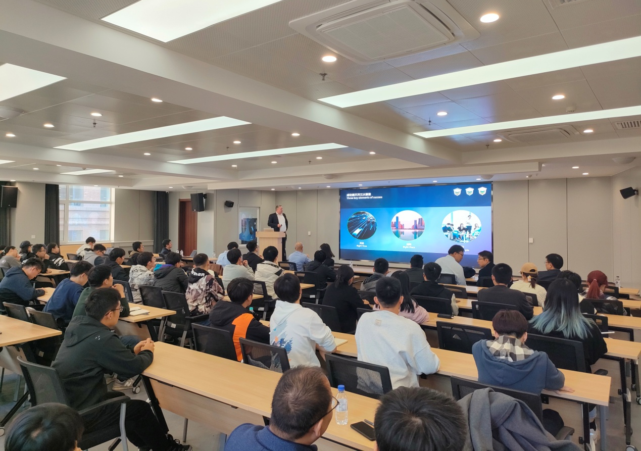 Holger Opfer博士随后为色情网 学生做了Tomorrow's Battery Systems In Terms of Integration and Charging Concepts的主题学术报告,使得师生们加深了德国大众在新能源汽车产业的布局和新技术引用, 报告后与同学们展开了热烈的互动。