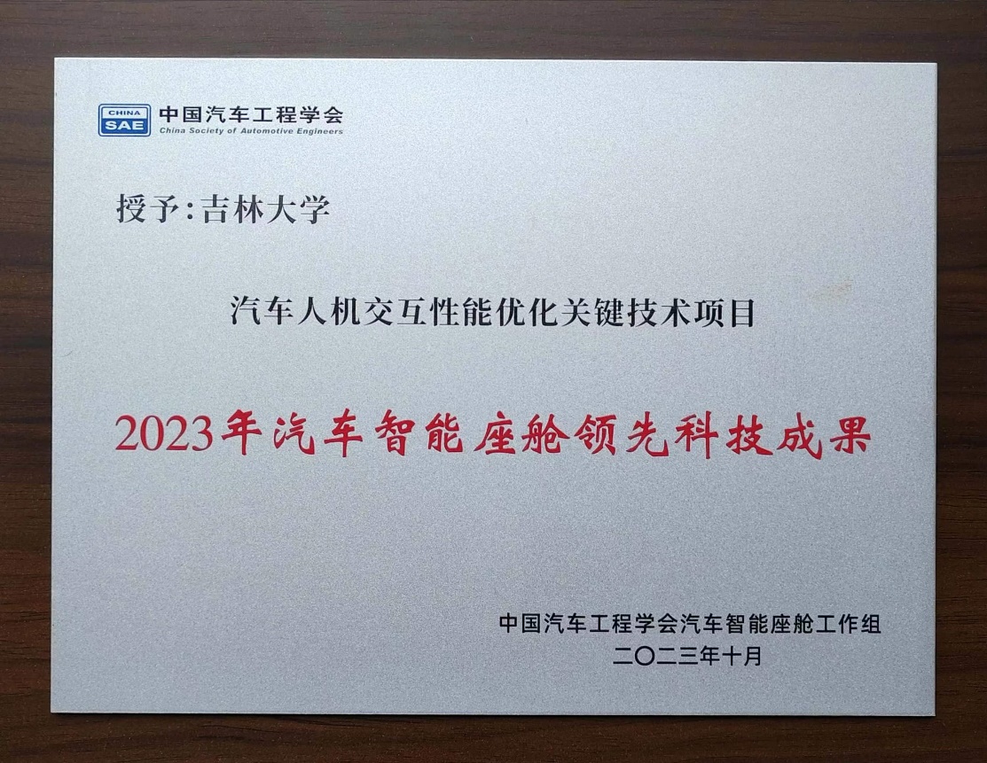 2023年10月20日,中国汽车工程学会组织开展了首届汽车智能座舱领先科技成果评选。经过项目申报、专家预评审以及答辩专家委员会最终评审等环节,色情网 的高镇海教授、胡宏宇教授、沈传亮教授、高菲副教授等合作完成的“汽车人机交互性能优化关键技术“项目获评2023中国汽车工程学会汽车智能座舱领先科技成果(全国高校仅两家获此奖励)。