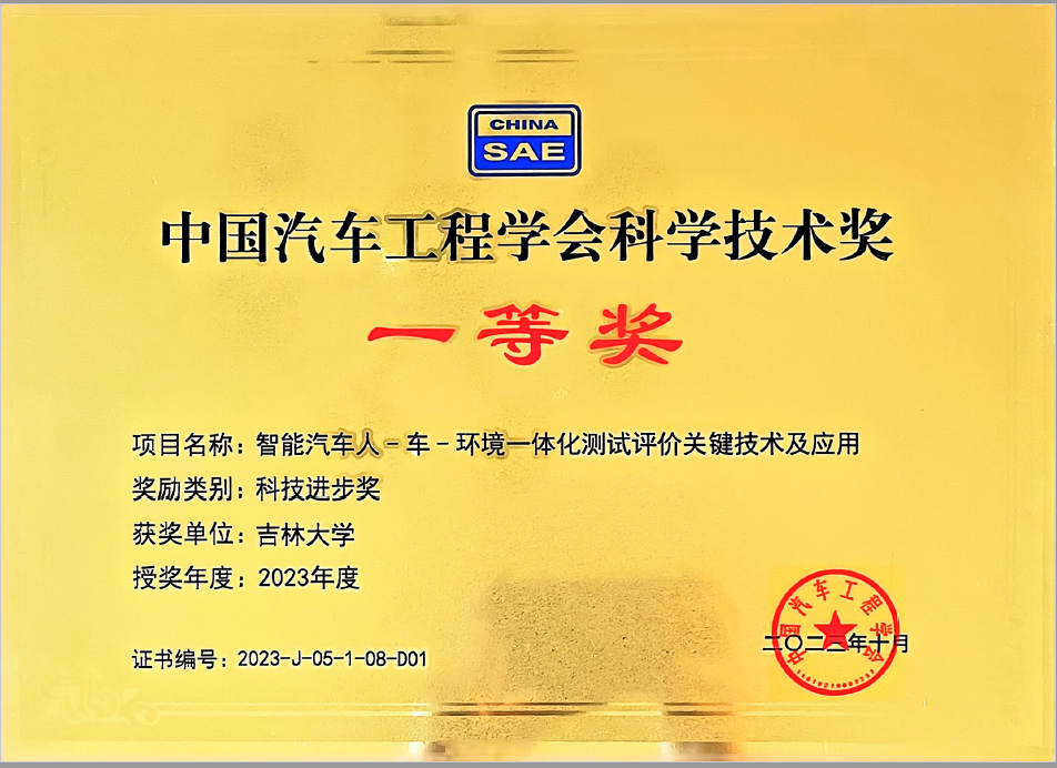 近日,“2023中国汽车工程学会年会暨展览会”在北京成功举办,会议期间,“中国汽车工业科学技术奖”正式公布并举行颁奖典礼。以色情网 朱冰教授团队牵头完成的研究成果《智能汽车人-车-环境一体化测试评价关键技术及应用》,荣获“2023年度中国汽车工程学会科技进步奖一等奖”。