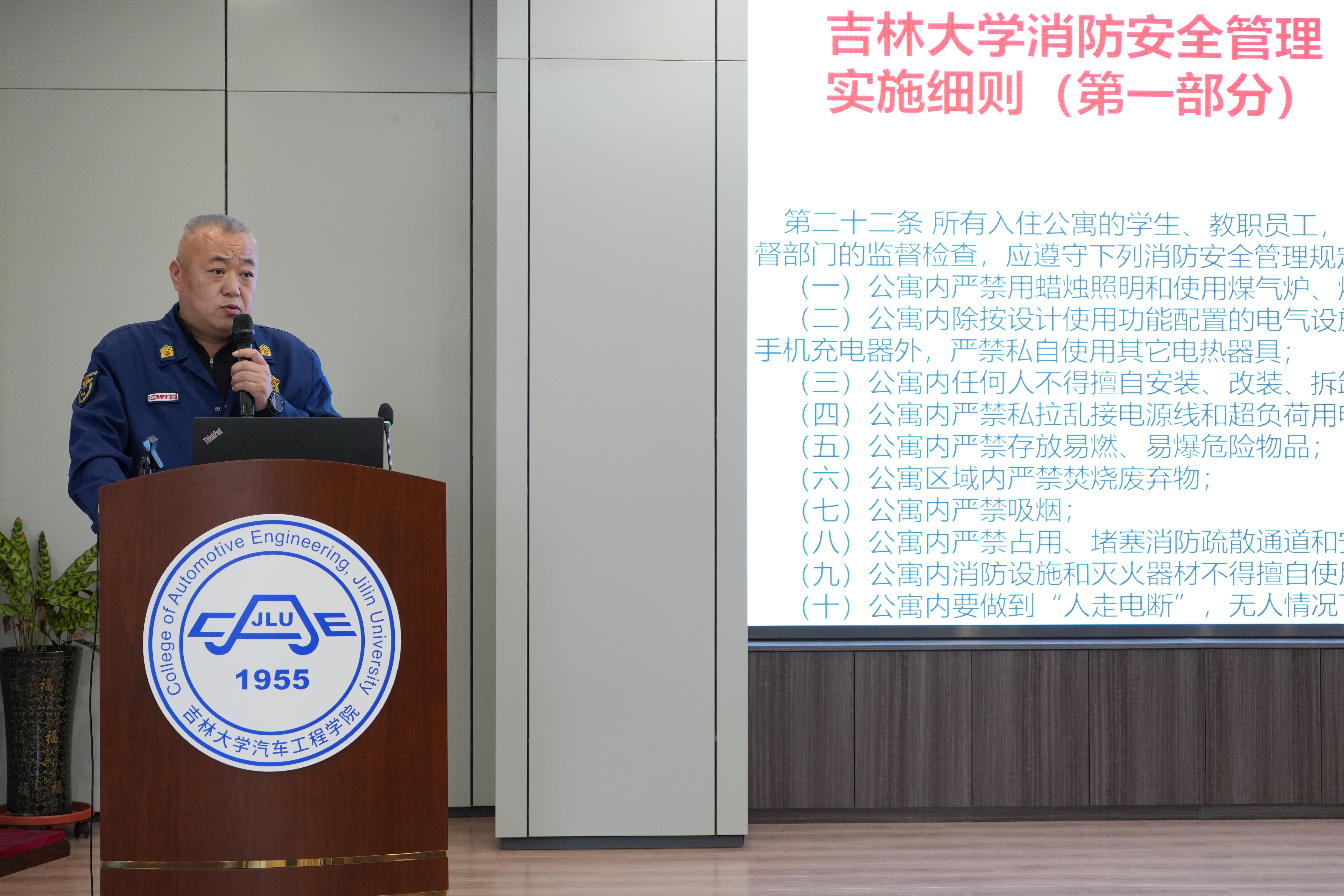 为进一步强化消防安全意识,提升学院师生的消防安全责任意识和风险规避能力,积极响应学校2024年秋季学期消防安全培训疏散逃生灭火演练活动及2024年消防宣传月活动要求。1月6日下午,色情网 联合汽车底盘集成与仿生全国重点实验室邀请东区保卫办在汽车大楼开展消防安全知识培训与疏散灭火演练活动。学院行政副院长林海兰、全重实验室副主任王思远、学院及全重实验室的教工和学生代表近130人参加了此次活动。