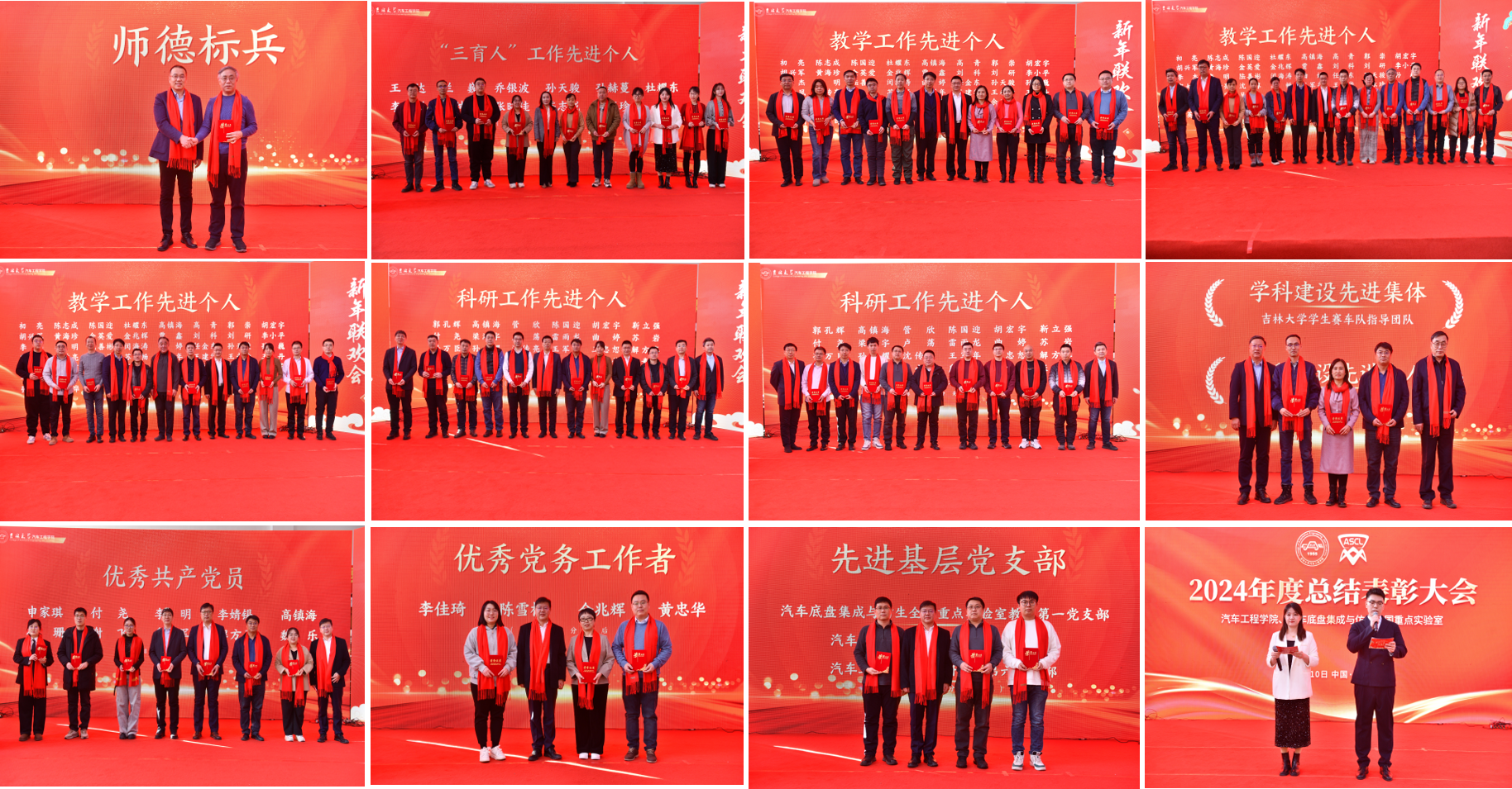 学院领导宣读了2024年度色情网 、汽车底盘集成与仿生全国重点实验室关于对获得师德标兵、“三育人”工作先进个人、教学工作先进个人、科研工作先进个人、学科建设工作先进集体及个人、优秀共产党员、优秀党务工作者、先进基层党支部的表彰决定。学院和全重实验室的领导分别为获奖教师颁发荣誉证书。