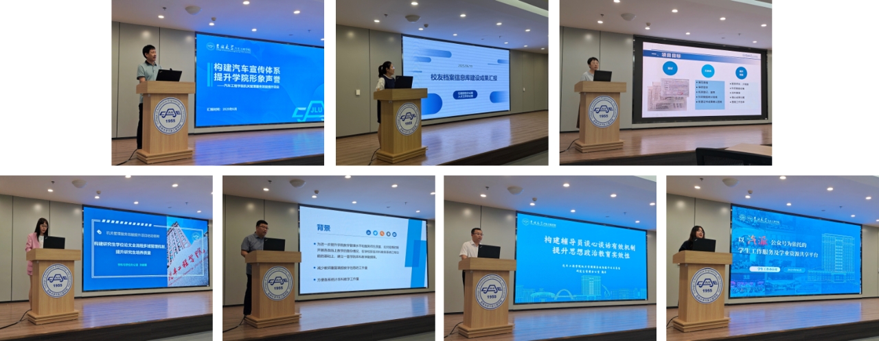 会上共7个项目进行了验收答辩,内容涵盖了学院形象宣传管理、校友档案信息管理、科研专利数据管理、研究生学位论文全流程管理、本科生教学数据管理、研究生思想政治教育,本科生服务及学业资源共享平台管理等多方面工作内容。各机关科室相关人员结合工作实际,就管理中的存在问题、改进措施、实现成果、未来计划等方面开展汇报,各系主任与会交流并对后续完善项目进一步提高服务效能提出了中肯的意见和建议。