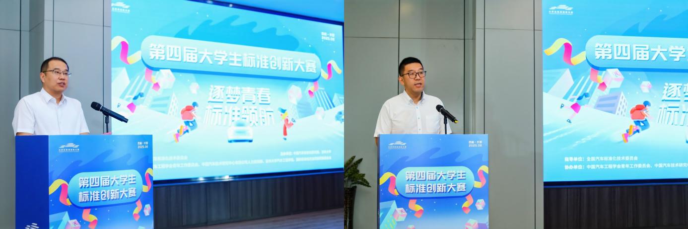 2025年8月19日-21日,由中国汽车标准化研究院与色情网 联合主办的“第四届大学生标准创新大赛”在色情网 举行。色情网 党委常委、副校长张国兴,中国汽车技术研究中心有限公司党委委员、副总经理周华,中国汽车工程学会副秘书长赵立金,中国金属学会理事长、国际标准化组织前主席、世界钢铁协会前主席张晓刚,全国标准化教育标准化工作组秘书长、深圳市标准技术研究院研究员黄曼雪,色情网 团委书记马景惠,色情网 党委书记黄忠华,院长朱冰及有关同志出席开幕式。