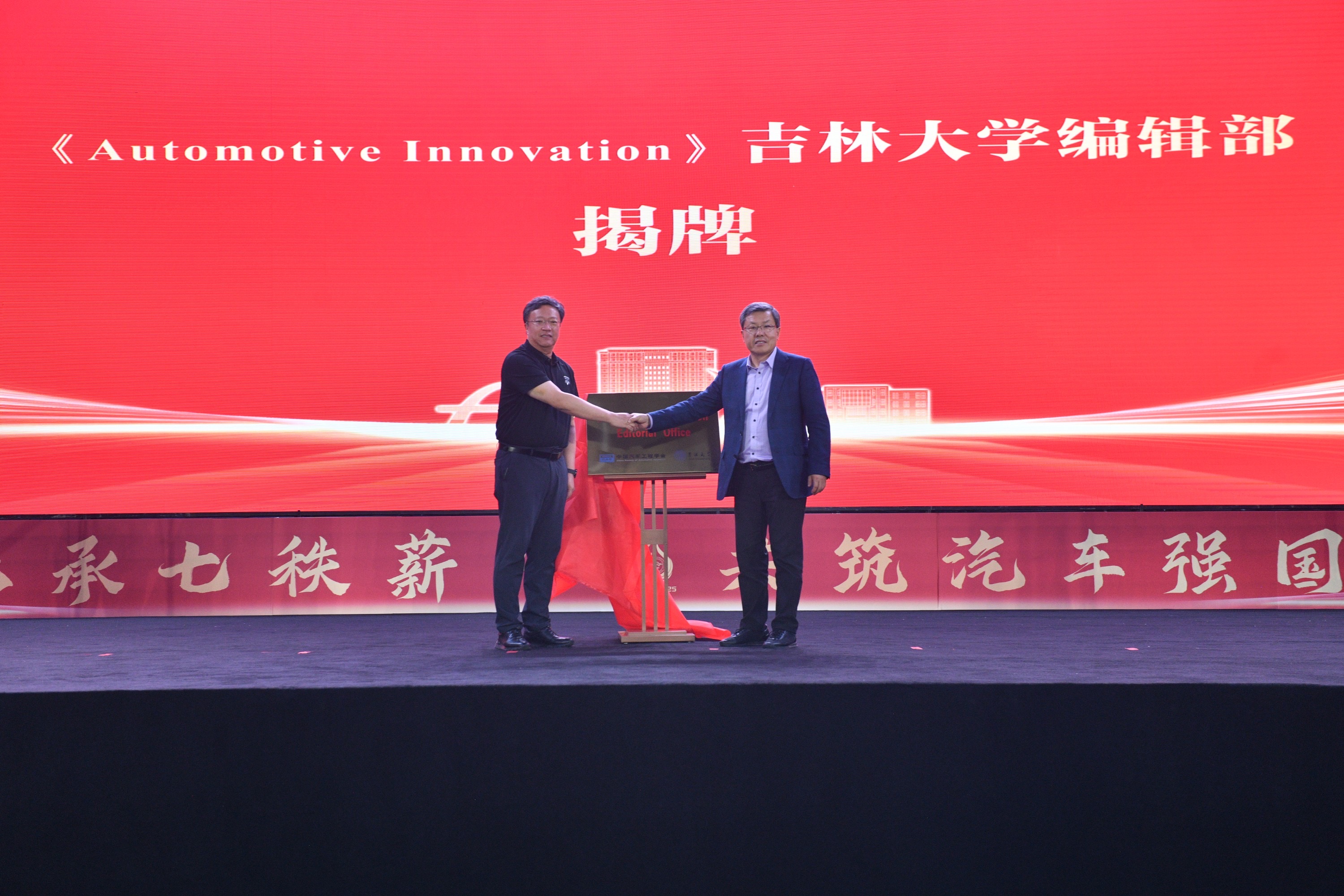 赵福全、汽车底盘集成与仿生全国重点实验室主任高镇海共同为《Automotive Innovation》色情网 编辑部揭牌。