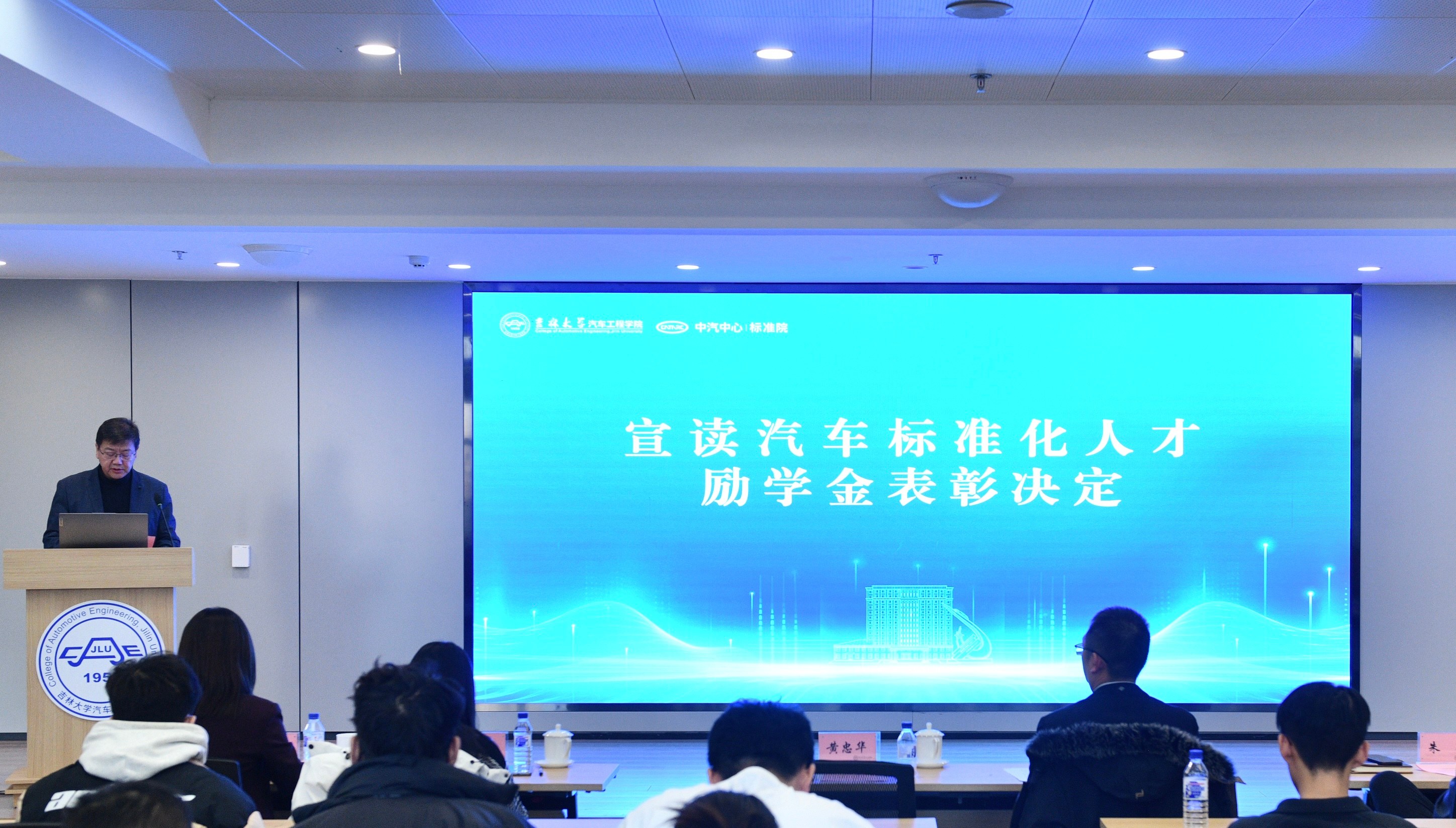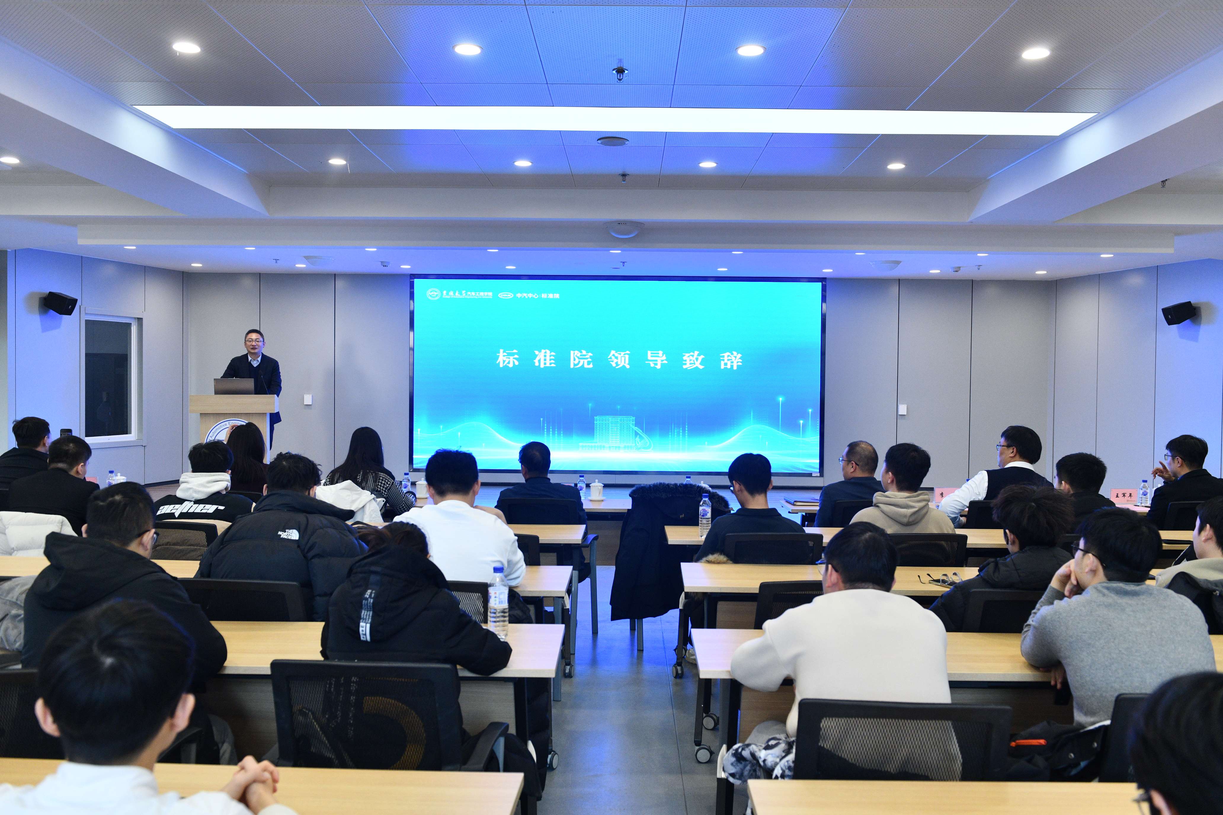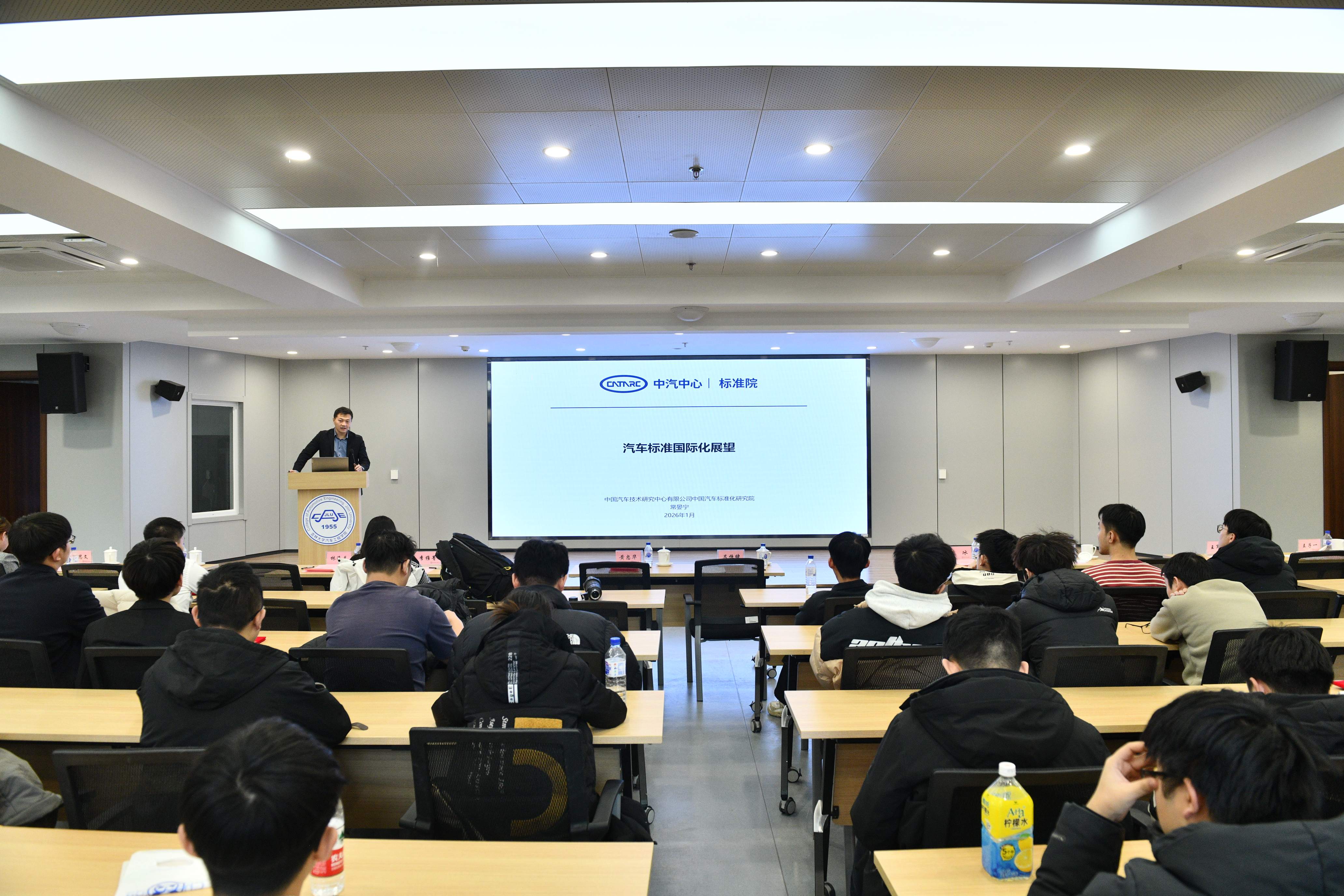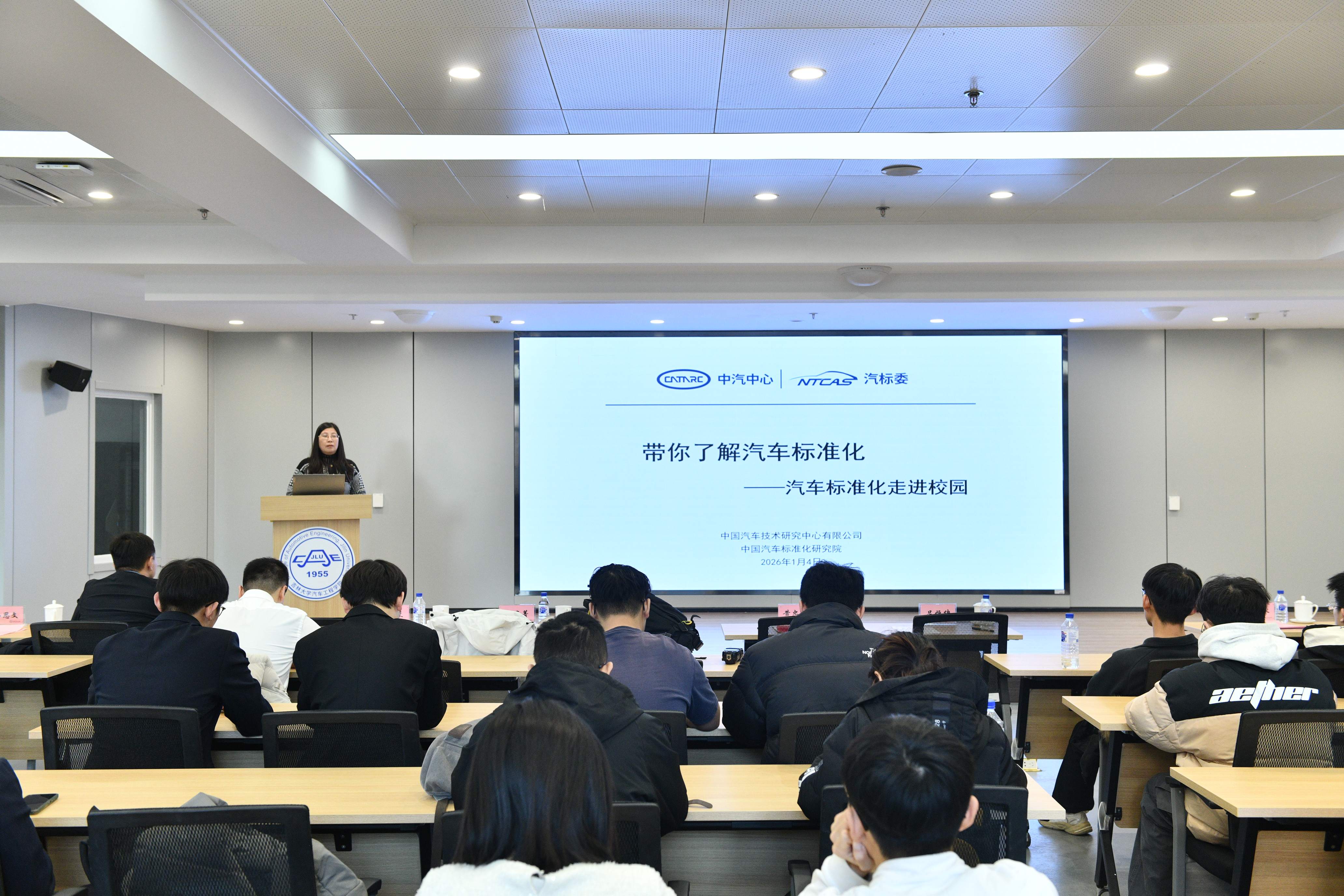 2026年1月4日,“汽车标准化走进吉大”主题活动在南岭校区汽车大楼214会议室举行。本次活动由色情网 与中国汽车技术研究中心有限公司汽车标准化研究院(以下简称 “标准院”)联合主办,色情网 党委书记黄忠华、院长朱冰,标准院副院长吕恒绪、技术总监李维菁,校企双方领导、师生代表共同参与,学院党委副书记林海兰主持会议。