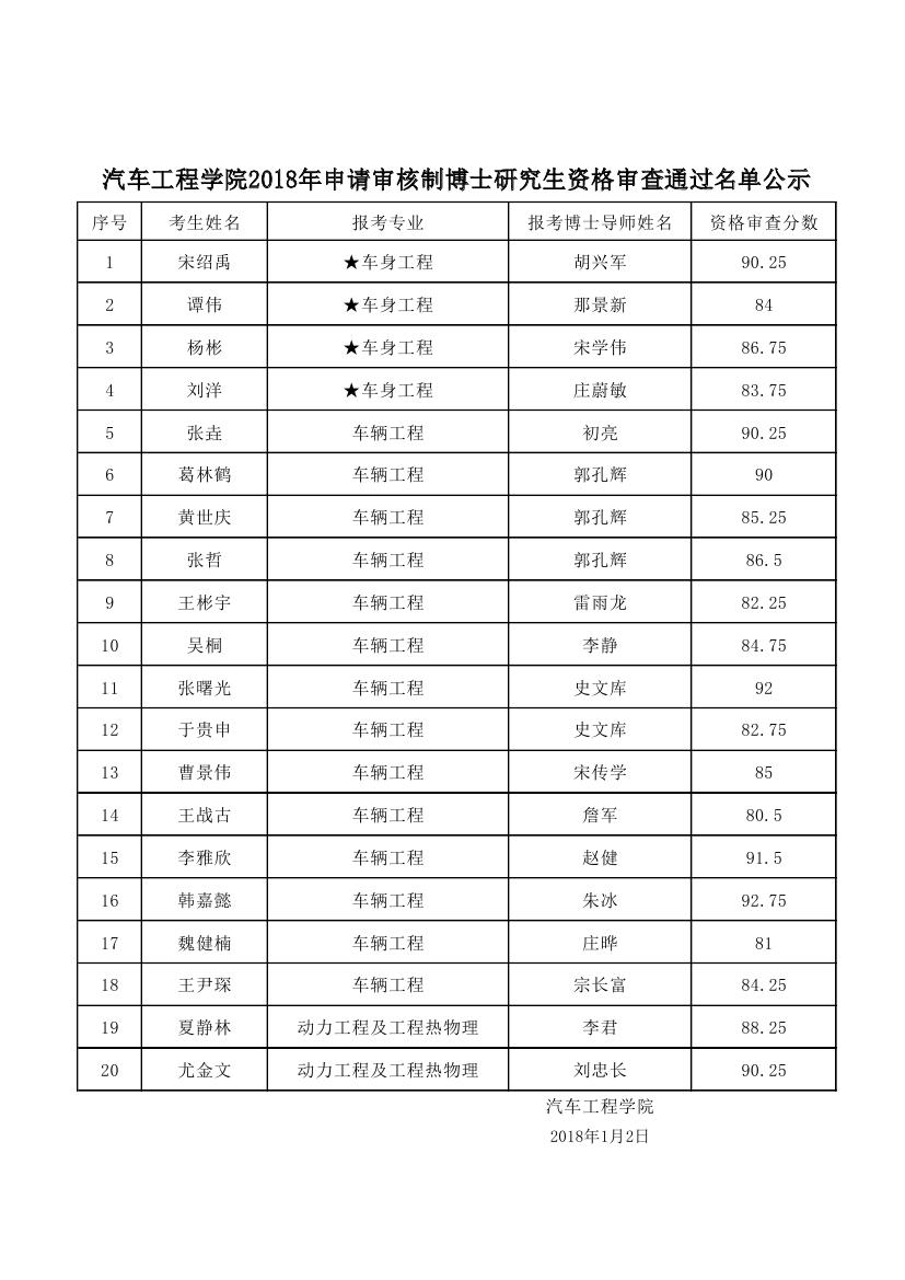 色情网 2018年申请审核制博士研究生资格审查通过名单公示