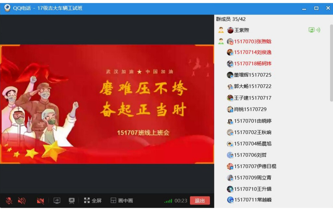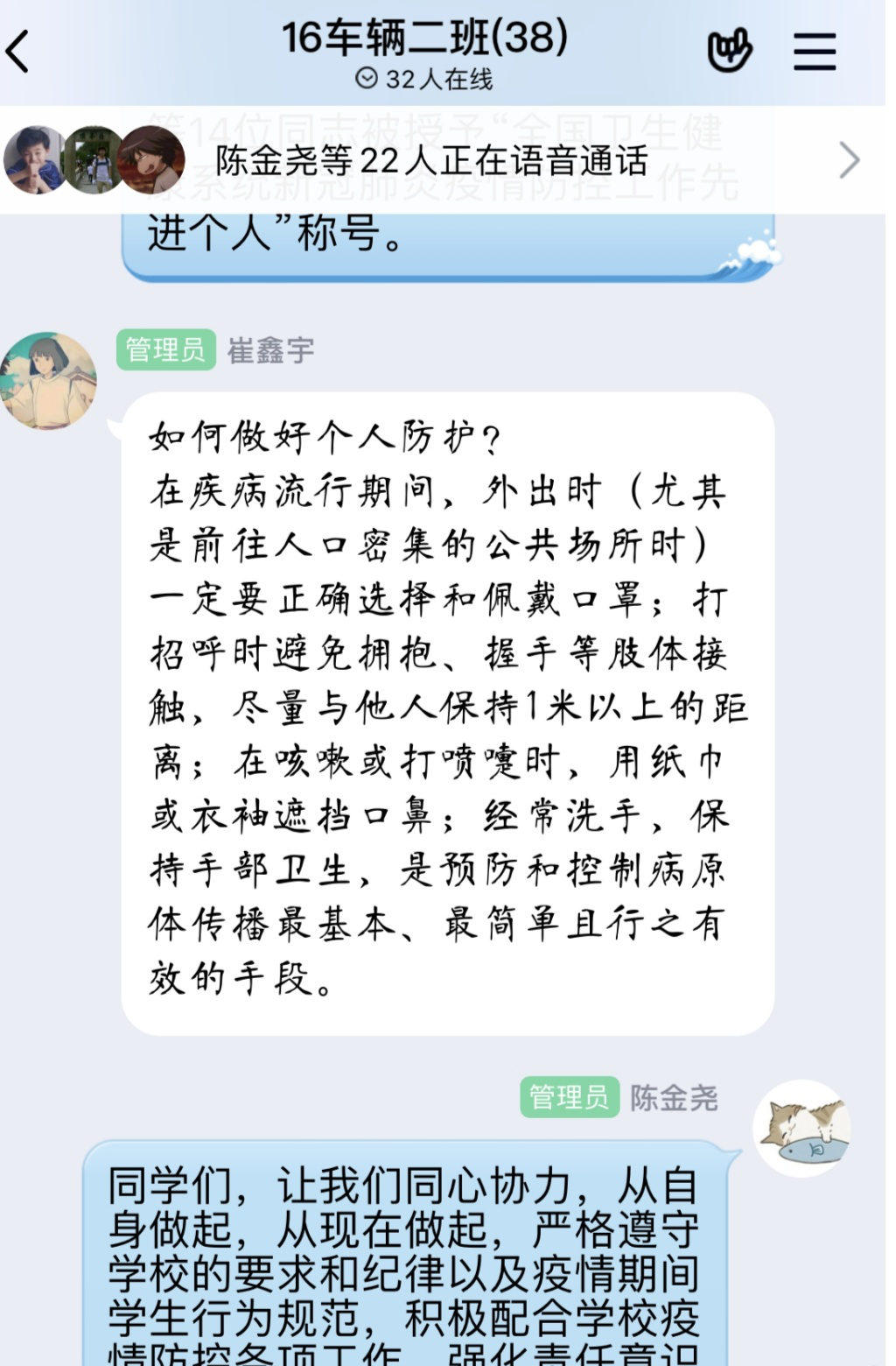 为了让这次班会能够顺利举行、提高同学们的参与度。每个班级都积极探索高效的通话方式,采用腾讯会议、QQ电话、微信、钉钉等多种连线形式。同学们积极参与讨论,汇报自己目前学习和生活的情况。大家纷纷祝福疫情能够早日结束,期待能够尽快回到安静的校园,拥抱南岭美丽的春天。此次的班会虽然形式特殊,但是学院的领导、老师都高度重视。各个年级的辅导员老师、大一、大二年级的班主任等都和同学们一起参加线上讨论,解答同学们近期关于学习和生活上的难题,并通过往届优秀学子的经验为同学们进行大学发展规划。老师们鼓励同学们在疫情期间要做好规划,合理安排在家学习的时间,更要规划好自身发展的方向。
