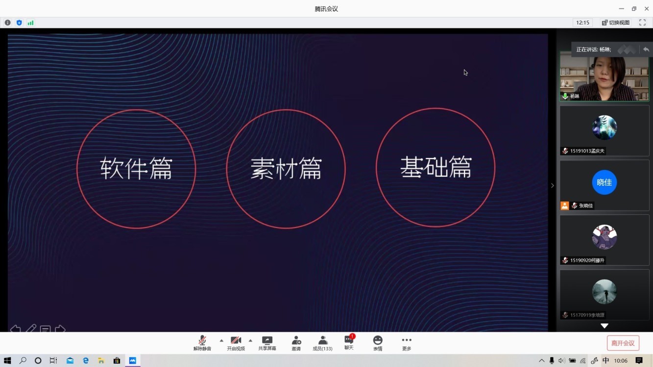 为提升学生就业技能,6月18日上午,色情网 开展了“零基础如何制作一份出色的PPT”专题就业指导活动。此次活动采用线上腾讯会议平台直播,彩蝶探索策划总监杨琳担任主讲人。