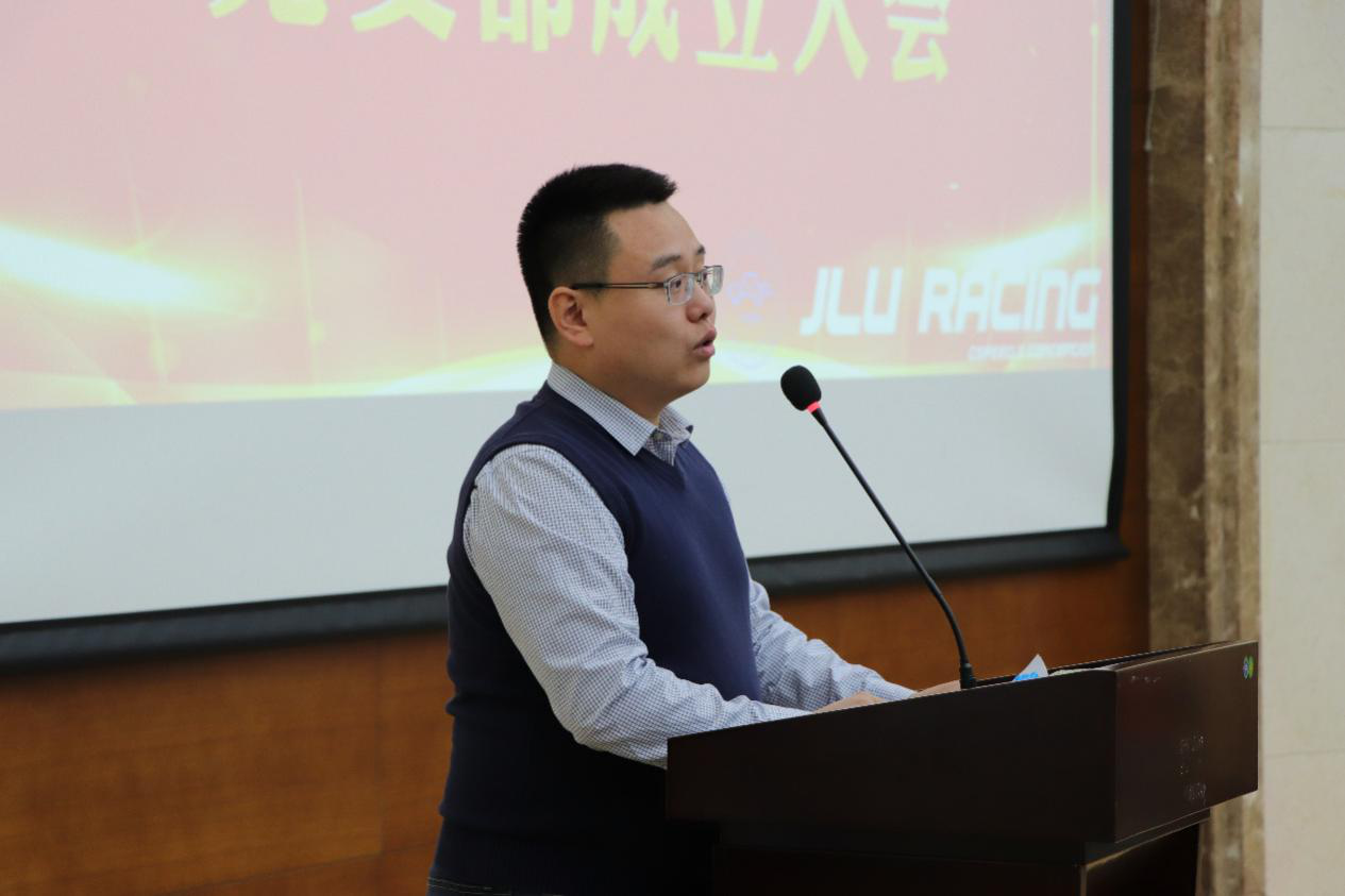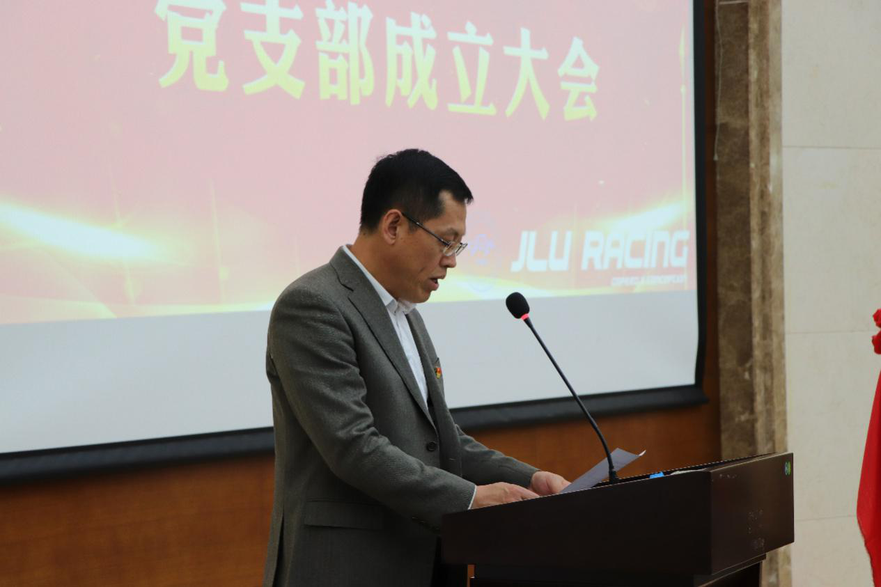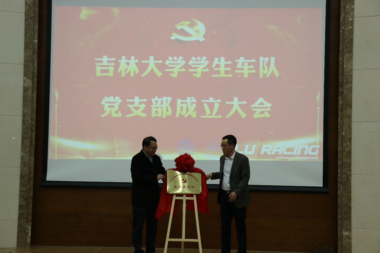 接下来学生车队党支部成立仪式正式开始。色情网 党委书记李善兴老师宣读了学生车队党支部成立决定;学生工作部部长代磊老师同李善兴老师一同为学生车队党支部揭牌;同时,代磊部长为马克思主义学院副院长石瑛教授颁发聘书,聘任其为学生车队党支部理论学习指导教师。最后,学生车队党支部书记金兆辉老师代表支部讲话。