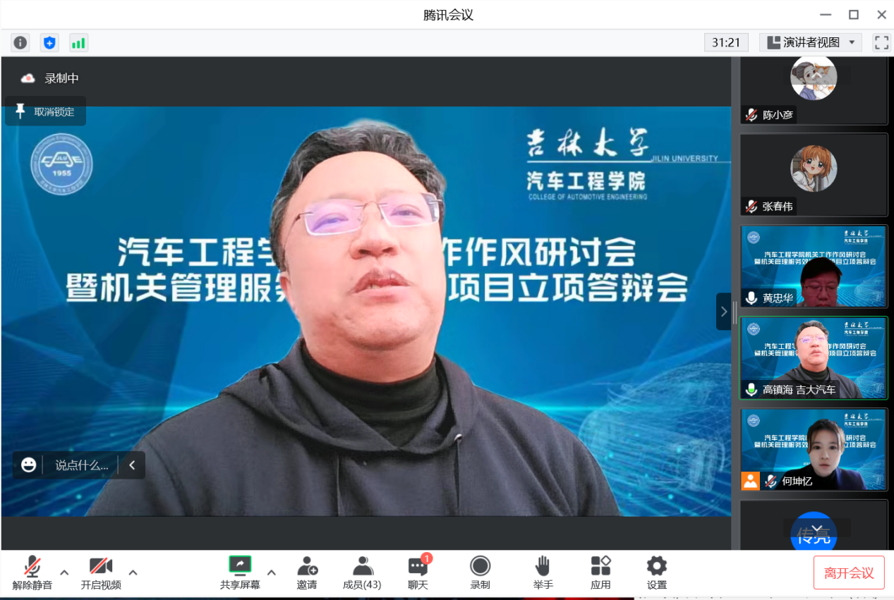 、汽车仿真与控制国家重点实验室领导班子成员,各系所主任、教师代表,机关各科室全体工作人员等50余人参加了会议。会议由党委书记黄忠华主持。